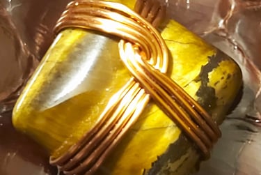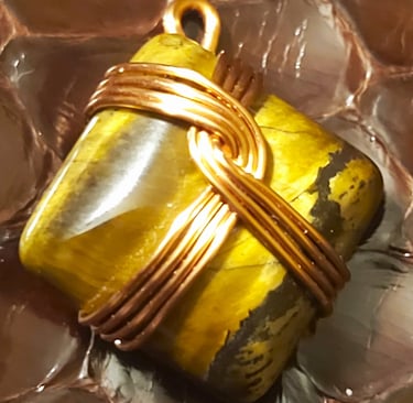 COLGANTE DE OJO DE TIGRE Y COBRE 20€