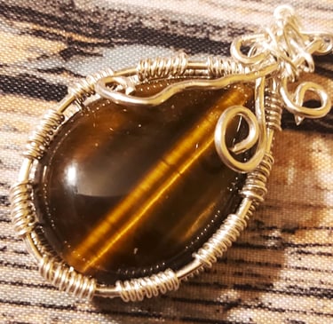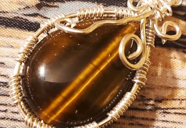 COLGANTE OJO DE TIGRE HILO PLATA 45€