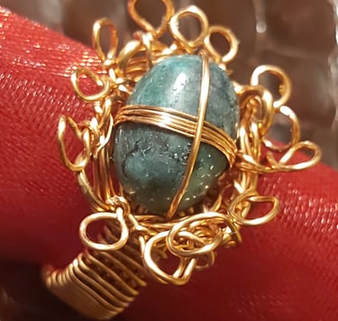 Nuestras sortijas son verdaderas obras de arte, elaboradas con gemas naturales que aportan belleza y singularidad a cada pieza. Cada gema es seleccionada cuidadosamente por su color, brillo y calidad, lo que garantiza que cada sortija sea única y especial. El uso de hilo de cobre en su diseño no solo añade un toque rústico y elegante, sino que también simboliza la conexión entre la naturaleza y la artesanía. Con un minucioso proceso de creación, nuestras sortijas no solo son accesorios, sino también una expresión personal de estilo y sofisticación.